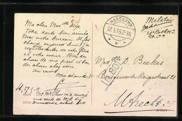 alte Ansichtskarte, gelaufen als Feldpost 1915, Eckknick oben li. u. unten re., guter Zustand