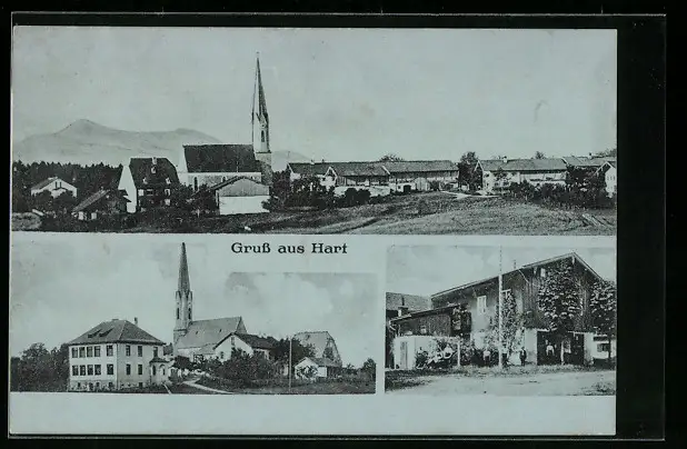 AK Hart, Ortspartie mit Kirche, Wohnhaus
