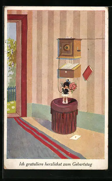AK Hartelijk gefeliciteerd, Kleines Mädchen am Telefon