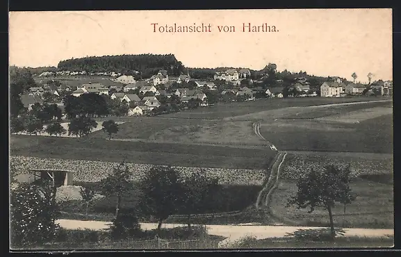 AK Hartha / Tharandt, Totalansicht mit Feldern und Landstrasse