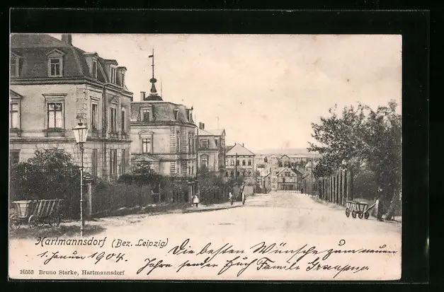 AK Hartmannsdorf /Bez. Leipzig, Strassenpartie im Ort