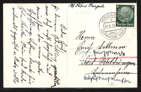 alte Ansichtskarte, gelaufen 1939, Bugspur re. oben, Eckknick re. unten, guter Zustand