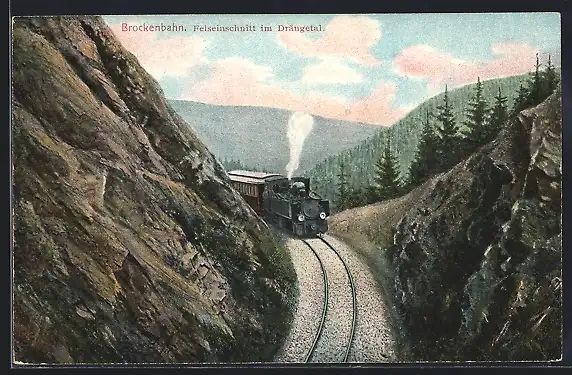 AK Harzquer- und Brockenbahn am Felseinschnitt im Drängetal