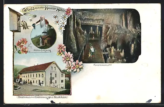 AK Hasel, Gasthaus zur Erdmannshöhle, Fürstengruft in der Haseler Höhle