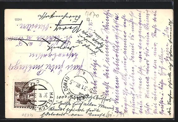 gelaufen 1935, Eckknick re. unten, guter Zustand