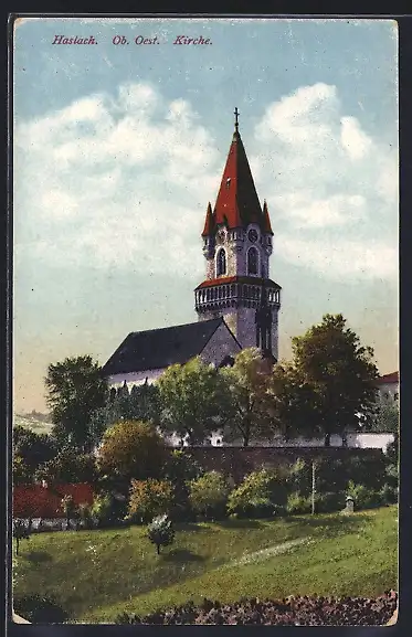AK Haslach /Ob. Oest., Ortspartie mit Kirche