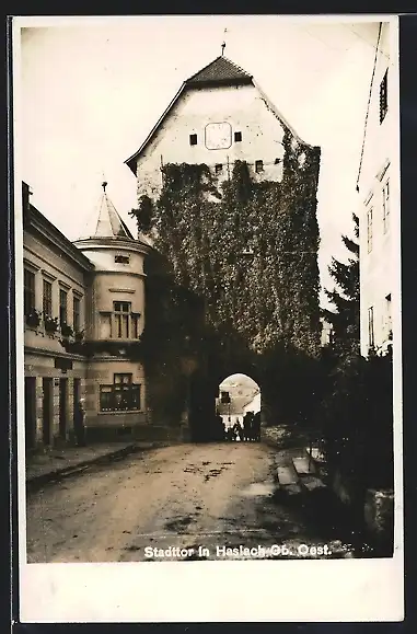 AK Haslach /Ob. Oest., Strassenpartie am Stadttor