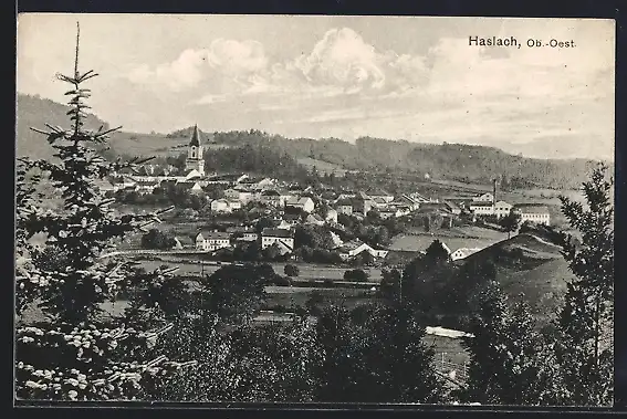 AK Haslach /Ob.-Oest., Teilansicht mit Tanne
