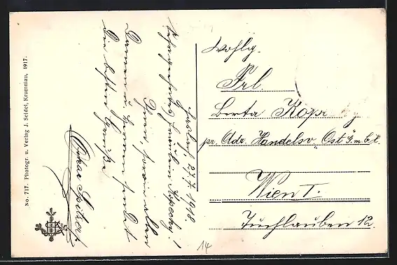 alte Ansichtskarte, gelaufen 1918, Briefmarke entfernt, rückseitig Oberflächenschaden, guter Zustand