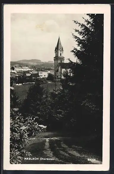 AK Haslach /Oberdonau, Ortspartie mit Kirche