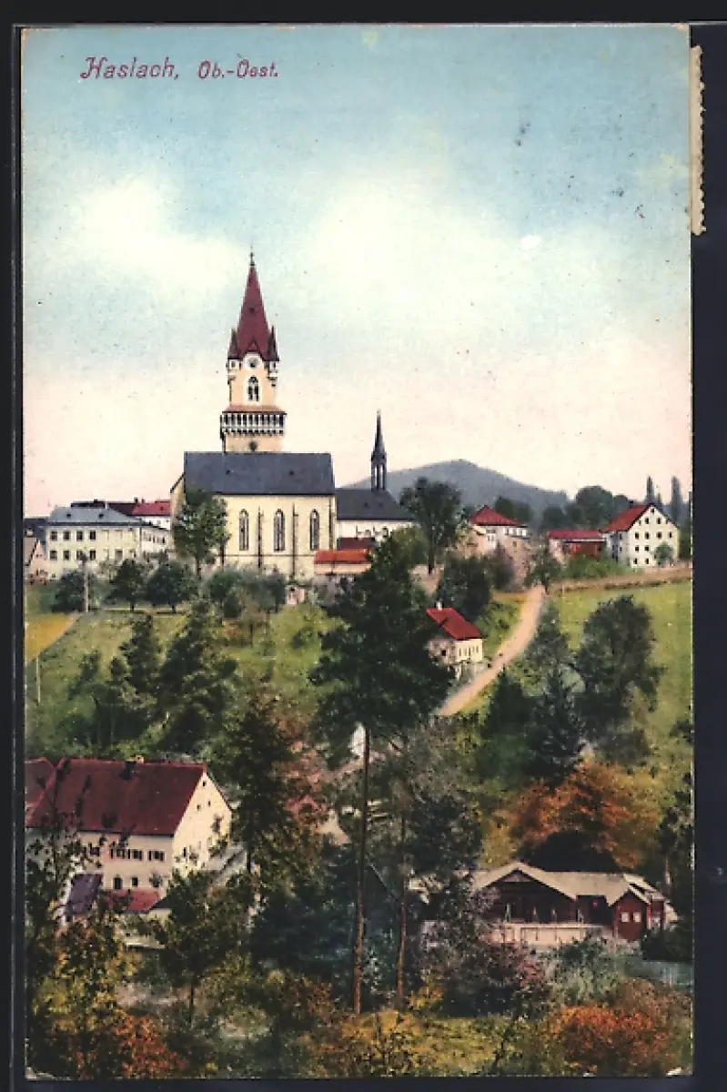 AK Haslach, Ortspartie mit Blick nach der Kirche