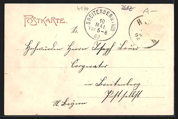 alte Ansichtskarte, gelaufen 1902, Briefmarke entfernt, guter Zustand