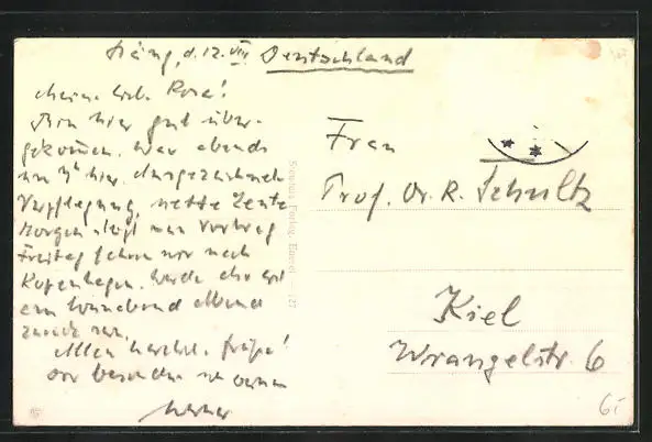 alte Ansichtskarte, gelaufen, Briefmarke entfernt, rückseitig Oberflächenschaden, guter Zustand