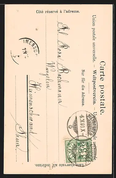 alte Ansichtskarte, gelaufen 1903, guter Zustand