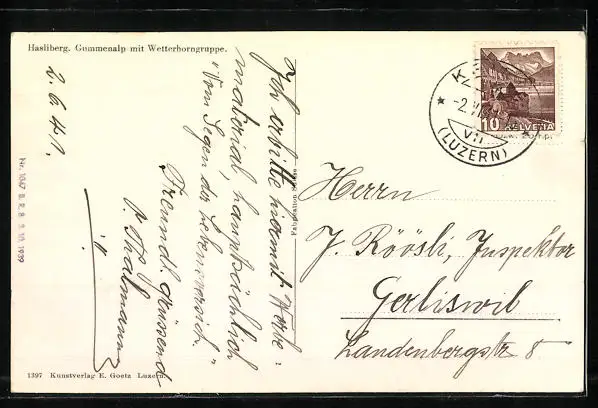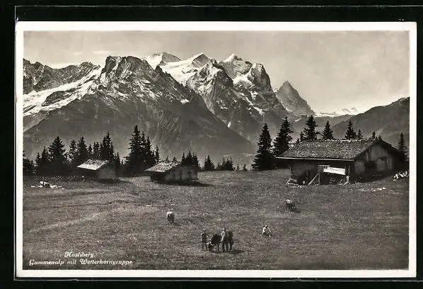AK Hasliberg, Gummenalp mit Wetterhorngruppe und Kühen