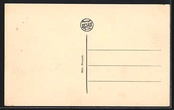 Personenbezogene Daten auf der Rückseite der Karte wurden durch blauen Textmarker unkenntlich gemacht. Die blauen Stellen sind auf die Vorderseite durchgeweicht und wirken sich negativ auf das Postkartenfoto aus