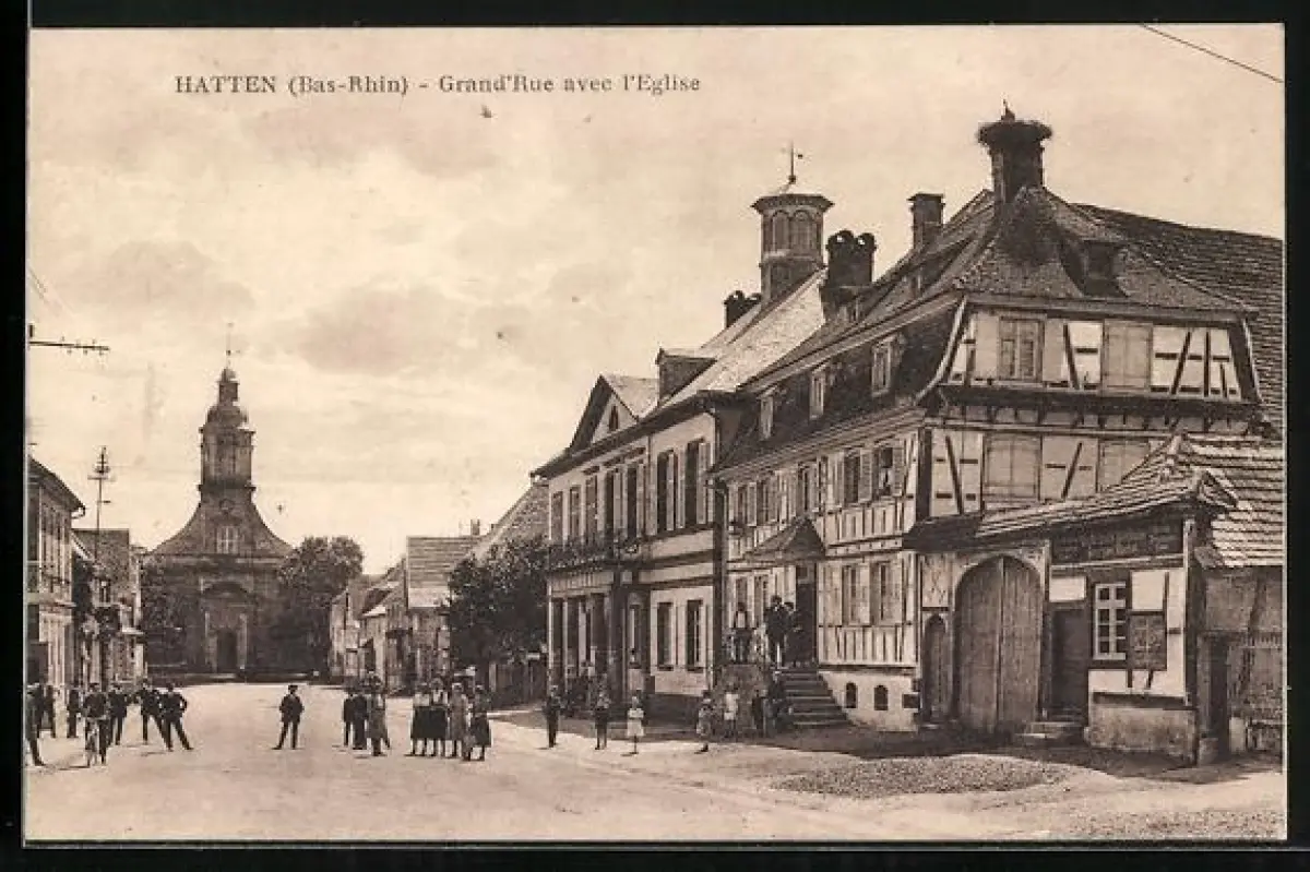 AK Hatten /Bas-Rhin, Grand`Rue avec l`Eglise