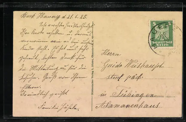 alte Ansichtskarte, gelaufen 1925, guter Zustand