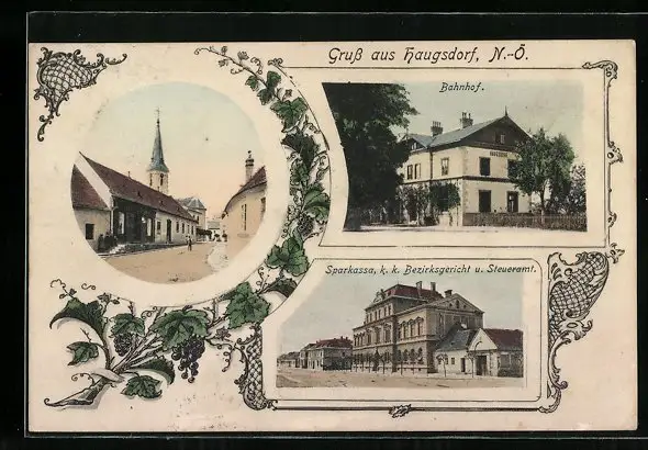 AK Haugsdorf, Bahnhof, Sparkassa, Steueramt
