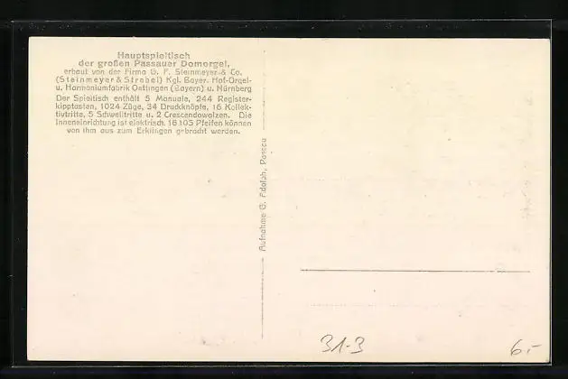 AK Hauptspieltisch der grossen Passauer Domorgel