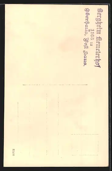 Personenbezogene Daten auf der Rückseite der Karte wurden durch blauen Textmarker unkenntlich gemacht. Die blauen Stellen sind auf die Vorderseite durchgeweicht und wirken sich negativ auf das Postkartenfoto aus