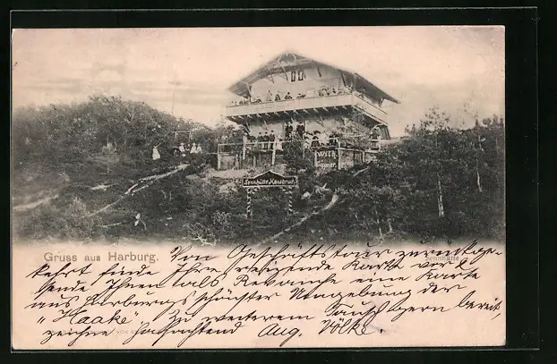 AK Hausbruch / Harburg, Sennhütte mit Gästen