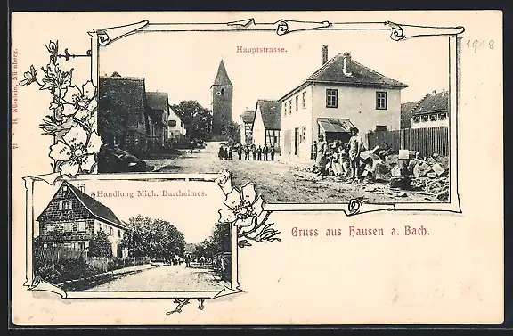 AK Hausen a. Bach, Handlung Mich. Barthelmes, Hauptstrasse