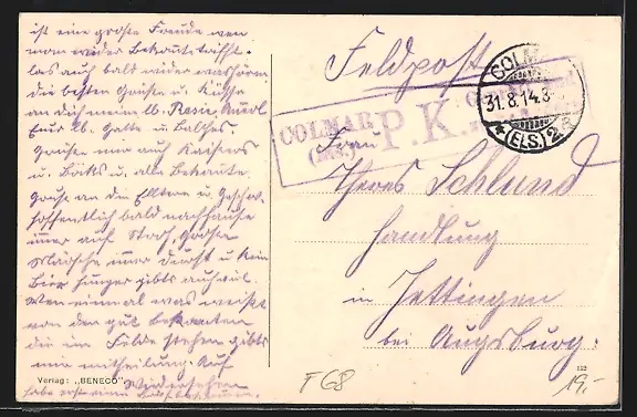 gelaufen 1914, Bugspur li. unten, guter Zustand