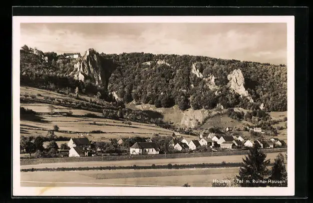 AK Hausen im Tal, Ortsansicht mit Ruine Hausen