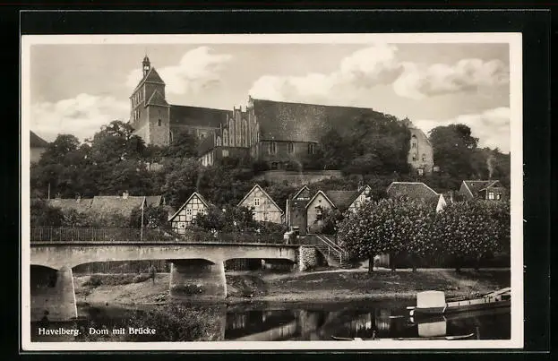 AK Havelberg, Flusspartie mit Dom und Brücke