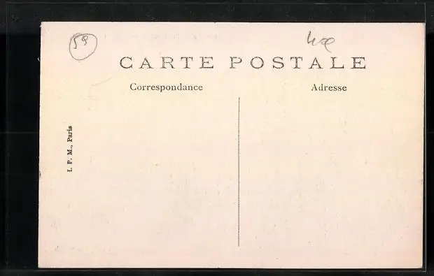 Personenbezogene Daten auf der Rückseite der Karte wurden durch blauen Textmarker unkenntlich gemacht. Die blauen Stellen sind auf die Vorderseite durchgeweicht und wirken sich negativ auf das Postkartenfoto aus