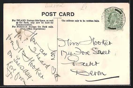 alte Ansichtskarte, gelaufen 1908, Stempelspur, guter Zustand
