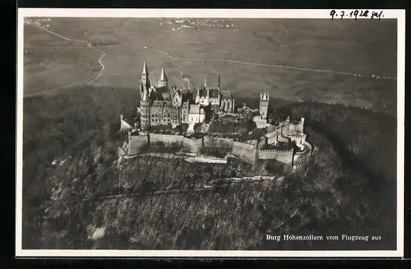 AK Hechingen, Burg Hohenzollern aus der Vogelschau