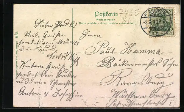 alte Ansichtskarte, gelaufen 1910, Klebestreifen an der oberen Kante, guter Zustand