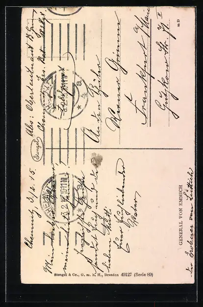 alte Ansichtskarte, gelaufen 1915, Eckknicke li. unten u. re. oben, Stempelspur, guter Zustand