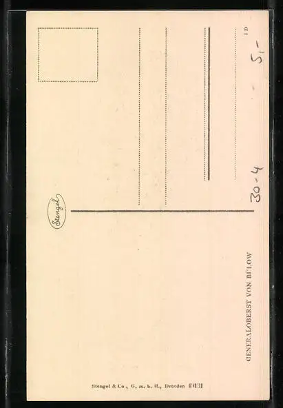 Personenbezogene Daten auf der Rückseite der Karte wurden durch blauen Textmarker unkenntlich gemacht. Die blauen Stellen sind auf die Vorderseite durchgeweicht und wirken sich negativ auf das Postkartenfoto aus