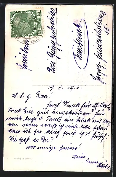 alte Ansichtskarte, gelaufen 1916, Abriebspur unten li., guter Zustand