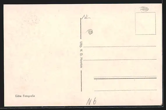 Personenbezogene Daten auf der Rückseite der Karte wurden durch blauen Textmarker unkenntlich gemacht. Die blauen Stellen sind auf die Vorderseite durchgeweicht und wirken sich negativ auf das Postkartenfoto aus
