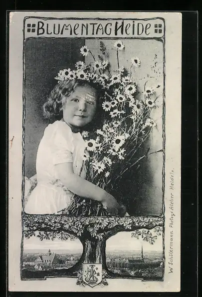 AK Heide, Blumentag, Mädchen mit Blumen, Ortsansichten