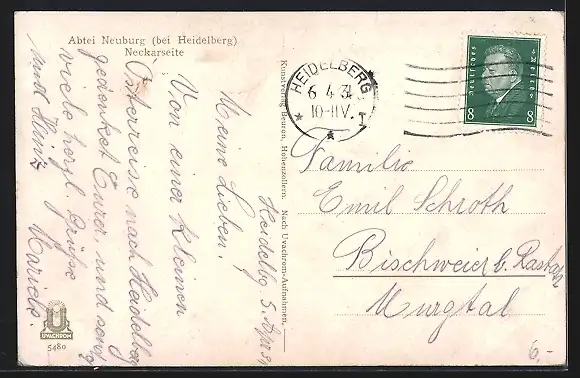 AK Heidelberg, Abtei Neuburg, Neckarseite