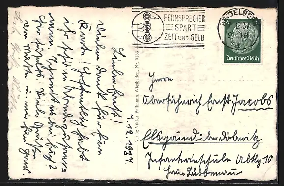 alte Ansichtskarte, gelaufen 1937, guter Zustand