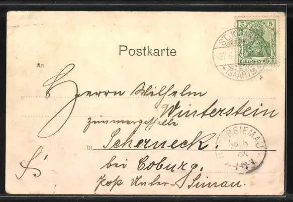alte Ansichtskarte, gelaufen 1904, guter Zustand