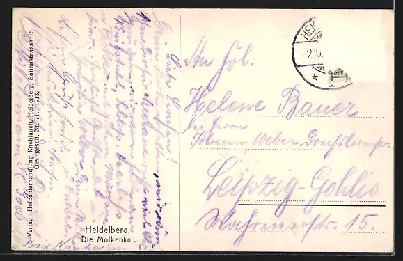 alte Ansichtskarte, gelaufen, Briefmarke entfernt, rückseitig Oberflächenschaden, guter Zustand