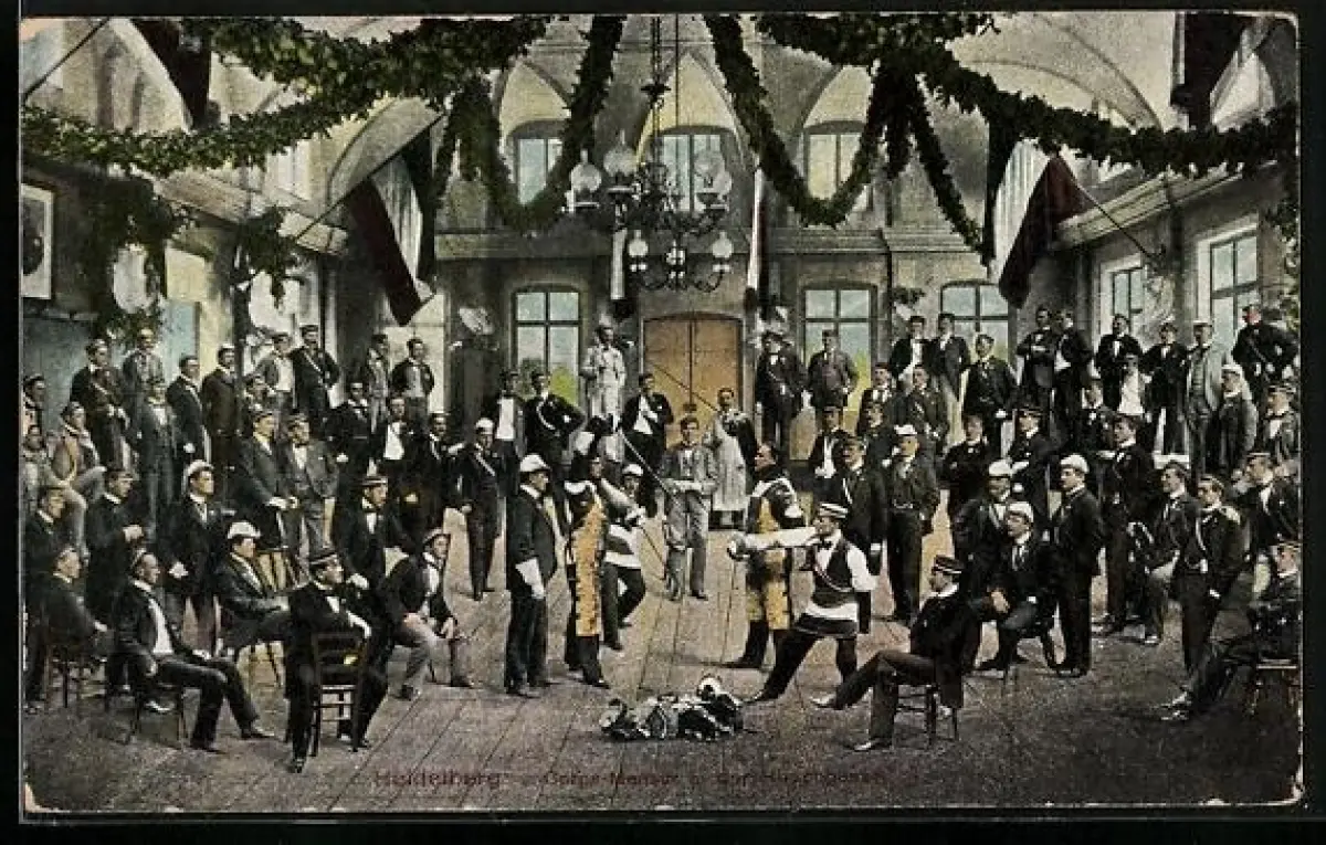 AK Heidelberg, Corps-Mensur im Gasthaus zur Hirschgasse