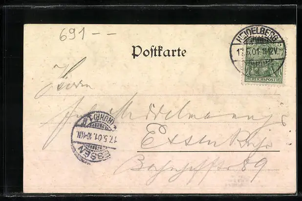 alte Ansichtskarte, gelaufen 1901, Eckknick re. oben, guter Zustand