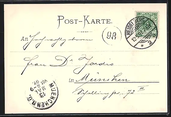 alte Ansichtskarte, gelaufen 1897, guter Zustand