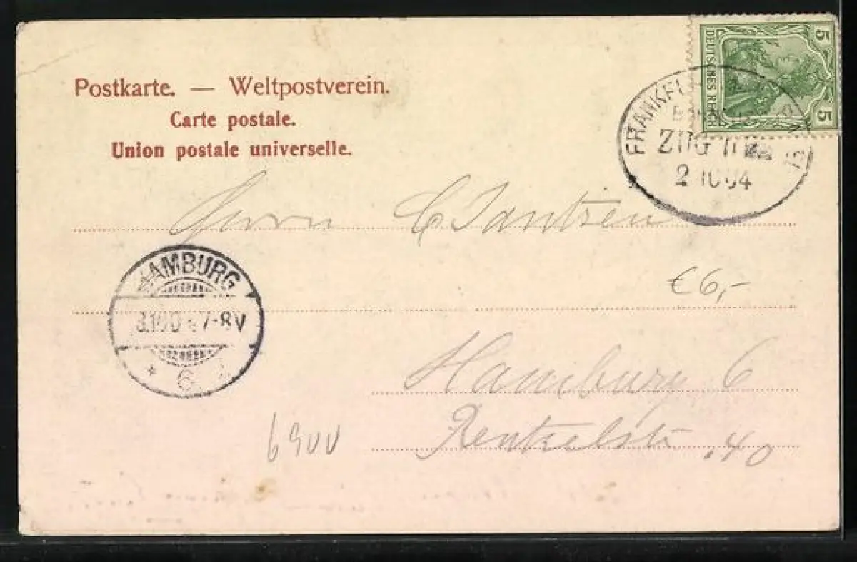 alte Ansichtskarte, gelaufen 1904, Eckknicke rechts, guter Zustand