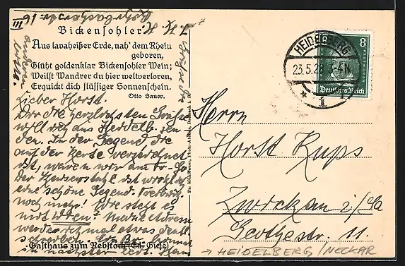 AK Heidelberg /Neckar, Gasthaus zum Rebstock und Metzgerei