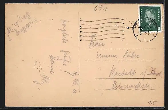alte Ansichtskarte, gelaufen 1929, Eckknick oben li., guter Zustand
