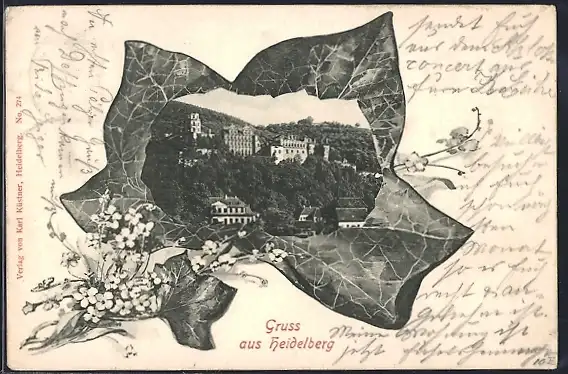 AK Heidelberg / Neckar, Schlossansicht im Efeublatt-Passepartout